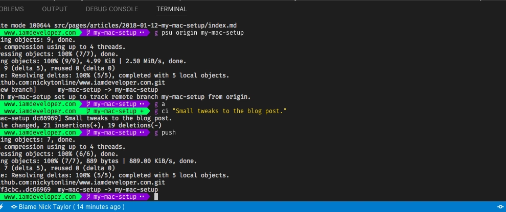 I participated in this week’s #devdiscuss about tooling, and I posted a few links to gists that are my setup on my Mac.